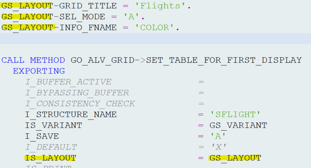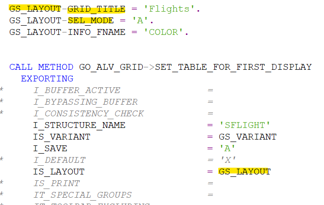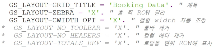 ALV의 Layout을 변경할때 LVC_S_LAYO 타입의 변수를 사용하여 변경이 가능하다.