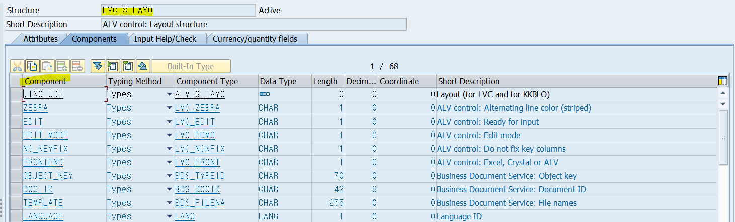 Structure 타입인 LVC_S_LAYO로 선언한 변수를