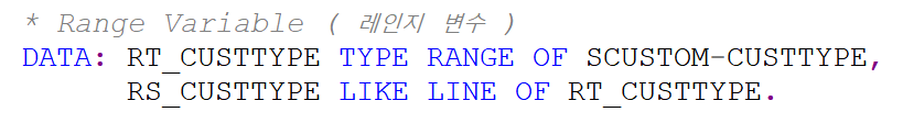 Range 변수는 SELECT-OPTIONS와 같은 구조를 갖는다.