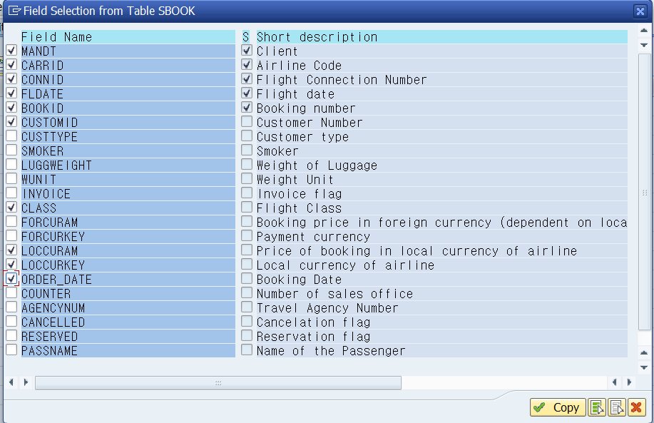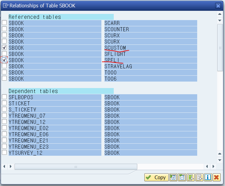 SCUSTOM과 SPFLI가 있는 체크박스를 누르고 Copy한다.