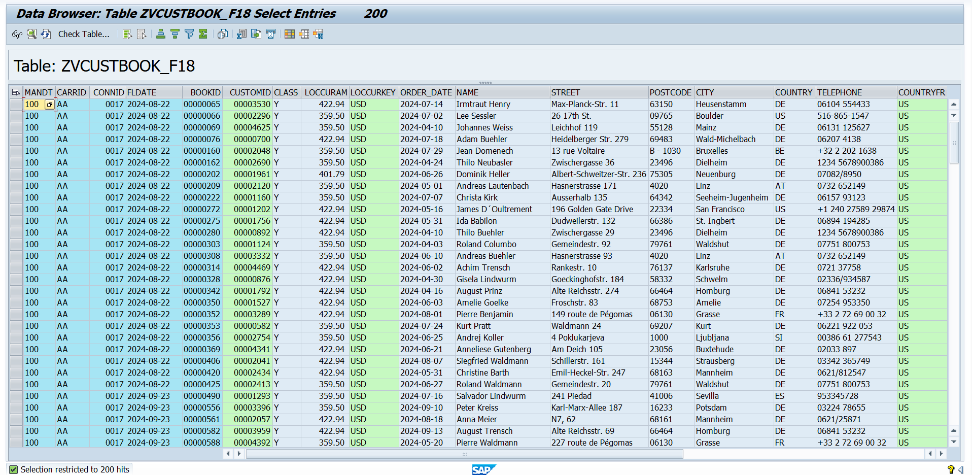예약(Book)을 중심으로 고객(SCUSTOM) 테이블, 비행(SPFLI) 테이블을 갖고 오고자