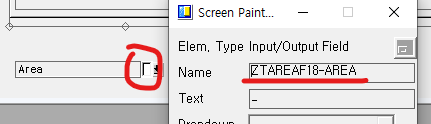 Screen Painer에서 ZTAREAF18 테이블의 AREA 필드로