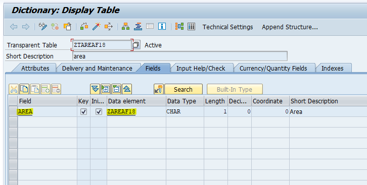 위의 예시로 든 ZAREAF18 도메인으로 ZTAREAF18 이름으로 Database Table을 생성했다.