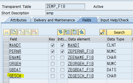 ZSEMP_QUIZ_F18에 조회한 데이터를 넣기위한