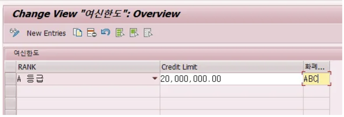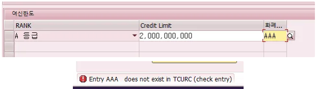 여신한도 테이블에 화폐단위 필드인 WAERS는 키 필드가 아니므로