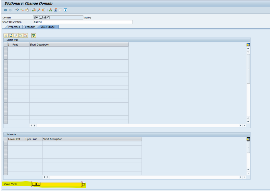 Domain에 Value Range 탭에 Value Table 입력칸이 있다.