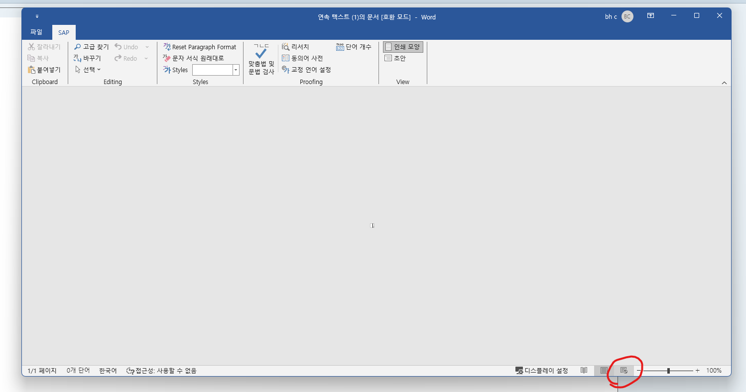 Word를 통해 텍스트 편집할때 화면이 이상하게 나오는 경우가 있는데