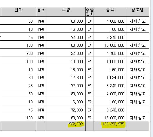 수량 또는 총금액 필드에 값을 넣어