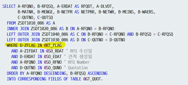Range Variable인 @RT_FLAG에는