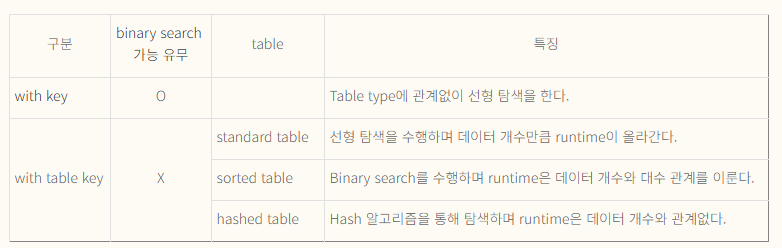 WITH KEY를 사용할땐 정렬을하고 BINARY SEARCH를 사용하도록하자.