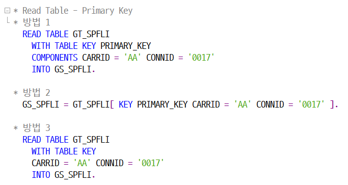 WITH TABLE KEY를 사용하면 Internal Table의 모든 키 필드를 명시해줘야한다.