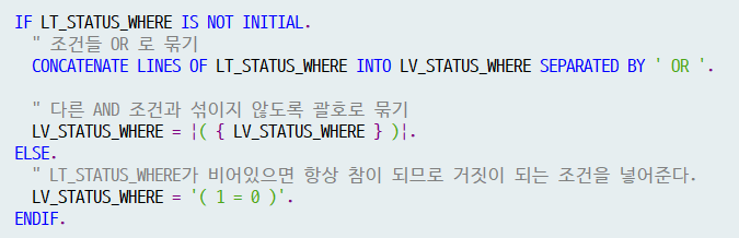 CONCATENATE 구문으로 Internal Table에 담긴 STRING들을 ' OR '로 연결한다.