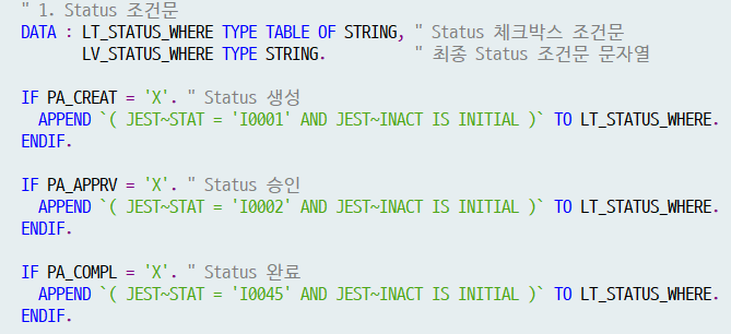 승인(REL) : JEST-STAT = 'I0002' & JEST-INACT IS INITIAL