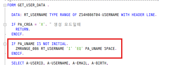 Range Variable에 SIGN, OPTION, LOW에 값들을 넣고 할당하는 반복적인 부분을