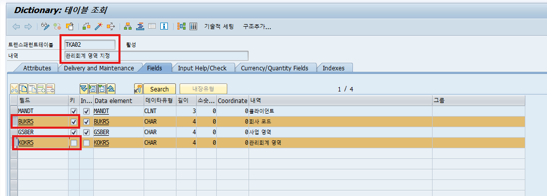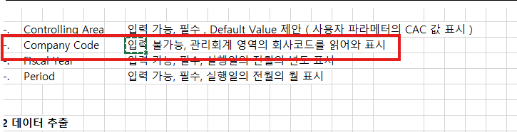 관리회계 영역의 회사코드 읽기
