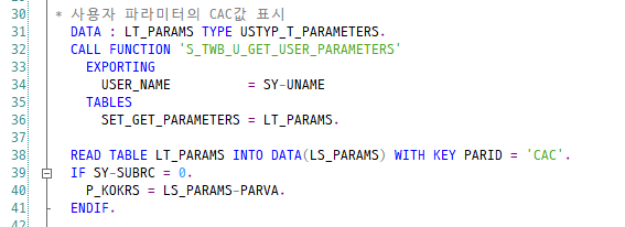 MEMORY ID 'CAC'를 사용하여 사용자 파라미터 값을 가져올 수도 있지만