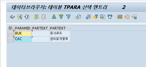 TPARA 테이블에는 파라미터 ID로 사용하는 키 값들이 무엇이 있는지 확인할 수 있다.