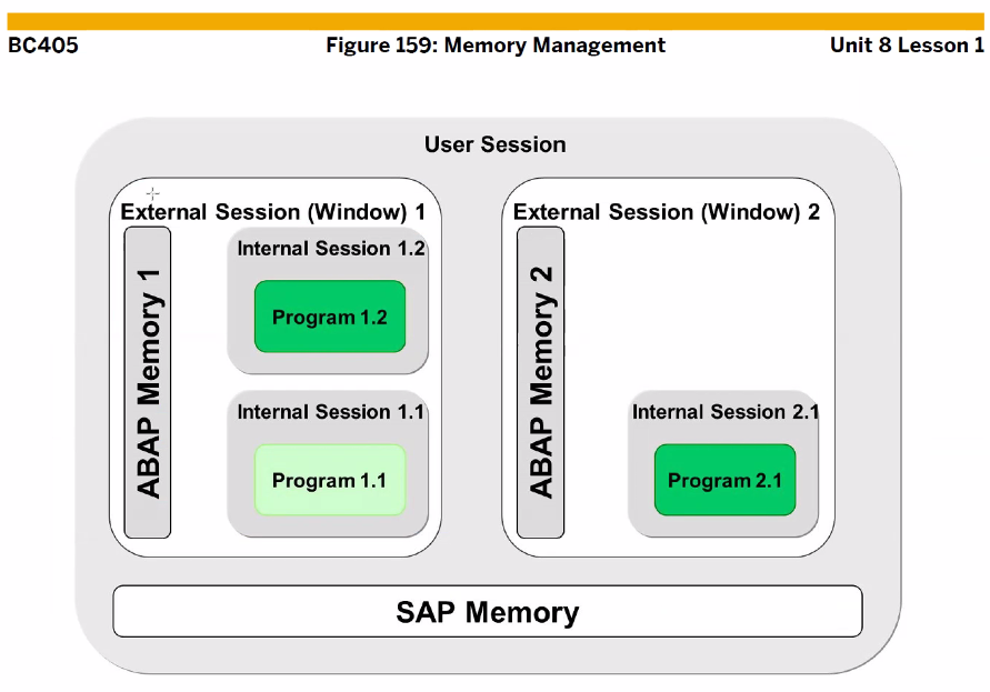 ABAP 메모리와 달리 SAP 메모리는 필드 값 하나만 ID에 할당할 수 있다.