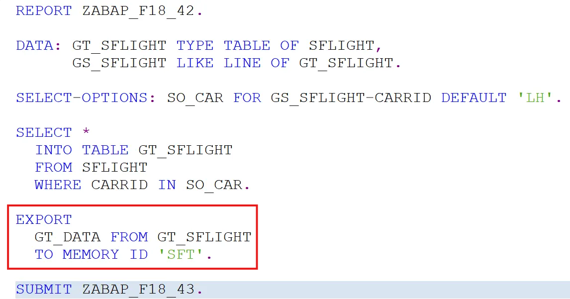 'SFT' 메모리 공간에 'GT_DATA'라는 이름의 데이터를 GT_FLIGHTS로 가져오겠다.