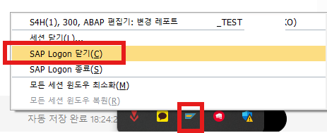 아래처럼 SAP GUI 우클릭하여 닫기 눌러서 세션을 확인 가능하다.