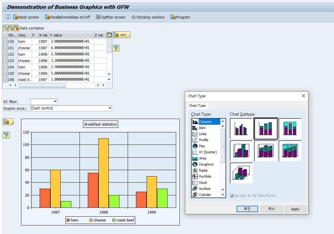 [ABAP] 'GFW_PRES_SHOW' 펑션으로 그래프 차트 쉽게 그리기 본문