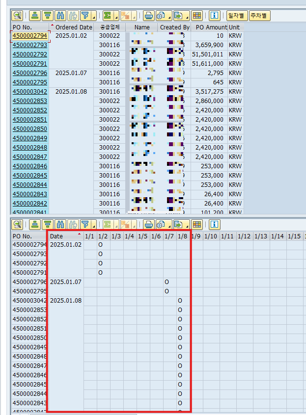 PO 번호와 날짜가 ALV의 어디 일자에, 어디 주차에 포함되는지 확인하기 위해