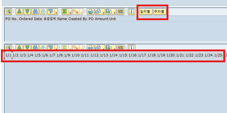 일자별을 누르면 해당 연도의 모든 일자별 ALV 필드가 나오고